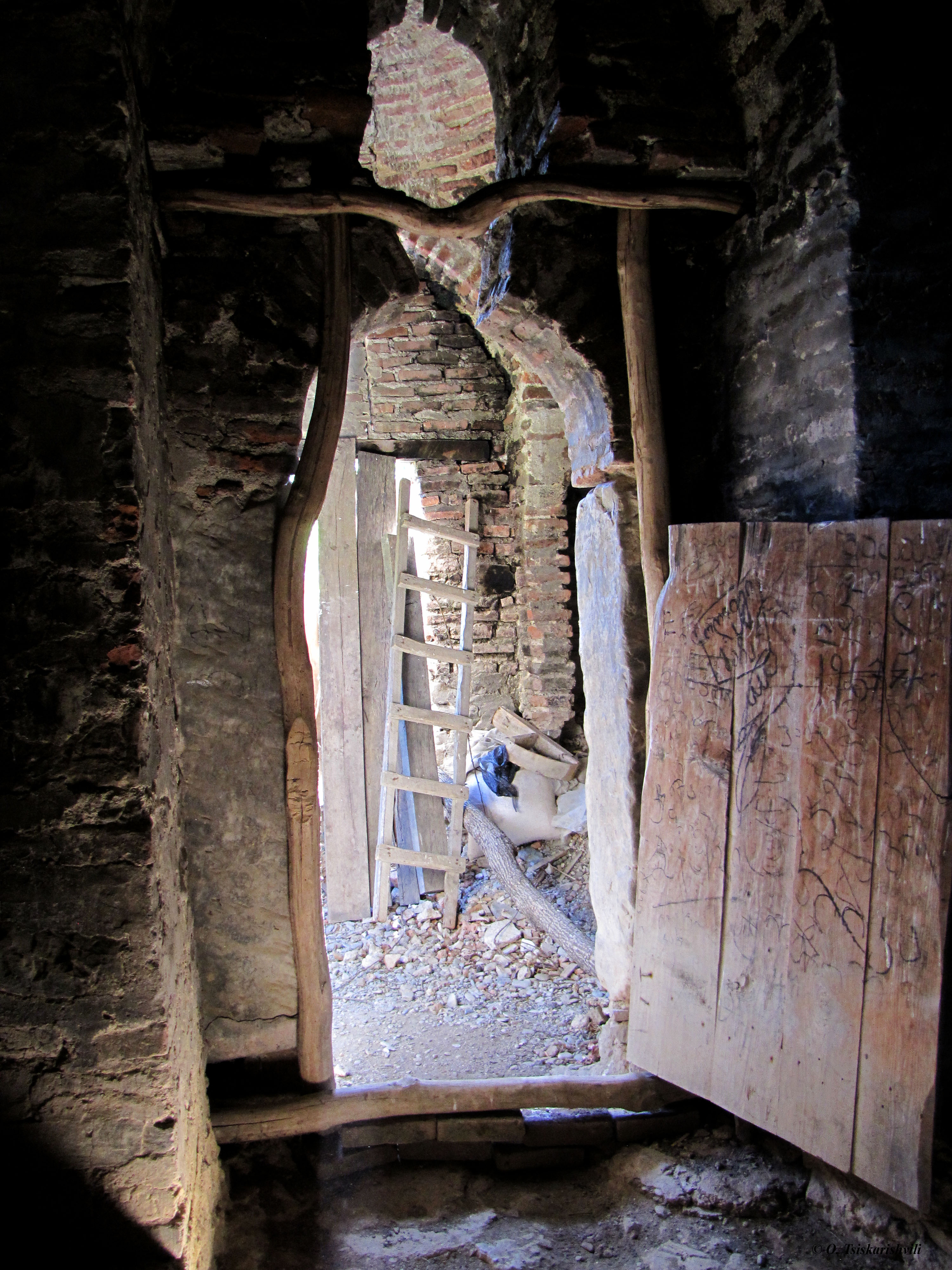 ეკლესიასთან ახლოს დევს ქვიშაქვის სწორკუთხა ქვის ნაწილი, რომელზეც გაირჩევა ექვსსტრიქონიანი მხედრული წარწერის ცალკეული ასოები.